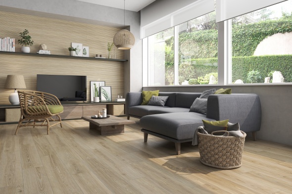 Colonial es una cerámica en acabado madera que captura la esencia orgánica y natural de los nudos, vetas y matices de color de la madera sin tratar. Se ofrece en listones de gran formato, 120x19,5 cm, de lados rectificados y provista de piezas de peldaño y zócalo que facilita grandes soluciones en decoración.