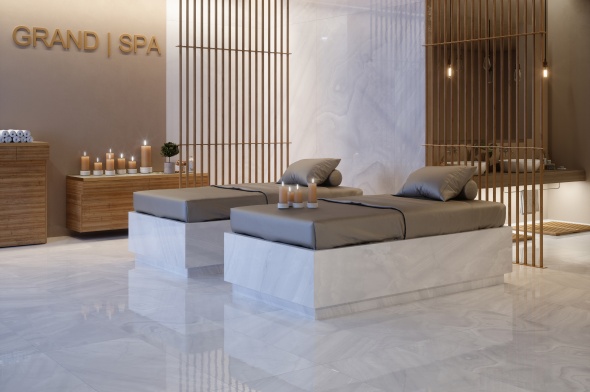 Opal es una cerámica en acabado marmolado sutil, diseñado sobre una superficie pulida que envuelve los espacios de suaves reflejos claros, limpios y elegantes.