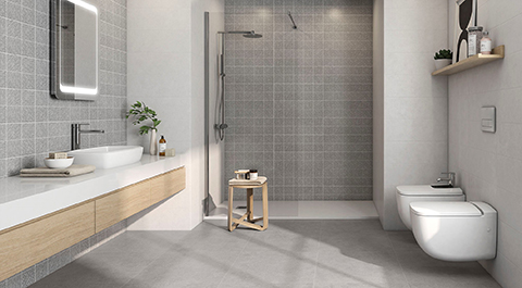 Tabarca destaca por su acabado de inspiración pétrea, con suave granulado y sutiles cambios de tono que aportan textura al modelo. Se trata de una serie muy versátil tanto en su variedad de formatos como en su gama cromática, que ofrece cuatro tonos neutros de gran funcionalidad: blanco, arena, gris y grafito.