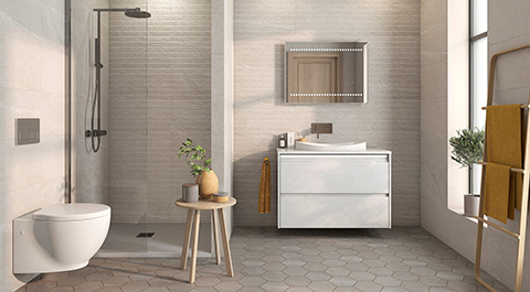 La colección se completa, asimismo, con varios modelos decorativos, que, manteniendo el espíritu natural de la serie, han sido diseñados para añadir un plus de sofisticación al ambiente. Suite Eterna (30 x 90,2 R cm) es un revestimiento con franjas horizontales en relieve, disponible en blanco, arena y visón. Es, sin duda, un modelo creado para romper la monotonía del espacio y jugar con las formas y las texturas dando protagonismo a determinadas áreas de la estancia. Por su parte, la Malla Hexágono Eterna (30 x 30 cm, en los cuatro colores de la colección) es un modelo pensado para configurar mosaicos a partir de pequeñas piezas hexagonales.