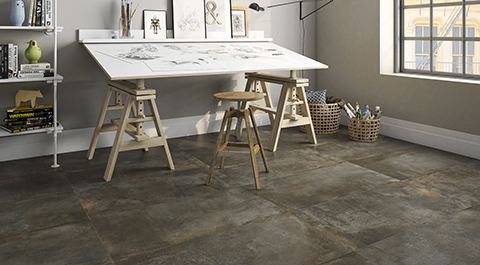 Ferrum is the ideal coloured porcelain tile for interior designs with an urban and industrial look. Following the latest trends, this ceramic range comes in large format pieces (50 x 100 cm. R, 61.5 x 61.5 cm. and 60 x 60 cm.) and in four neutral colours that range from the depth of black and mocha to the naturalness of grey and white. Colours that are more intense where rust has left its trace, providing an irregular finish full of realism.