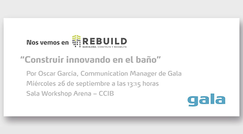 Gala participará el próximo miércoles, día 26, en el ciclo de conferencias de Rebuild, la feria que se ha concebido como una plataforma exclusiva para descubrir las últimas tendencias y avances en el sector de la construcción y la reforma de viviendas y edificios. Así, Oscar García, director de Comunicación de Gala, pronunciará una conferencia bajo el título “Construir innovando en el baño”.