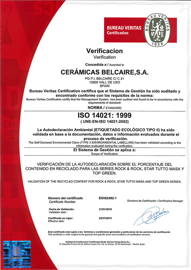 Profesionales>Certificaciones Profesionales Certificaciones 01 EMPRESA IQNet Empresa AENOR Empresa Política de Calidad y Medio Ambiente 02 CERÁMICA ISO 14001 ISO 14021 ISO 14025 ISO 9001 CHINA CCC Profesionales Gala ProfesionalIdentidad corporativaCertificacionesÁrea privada